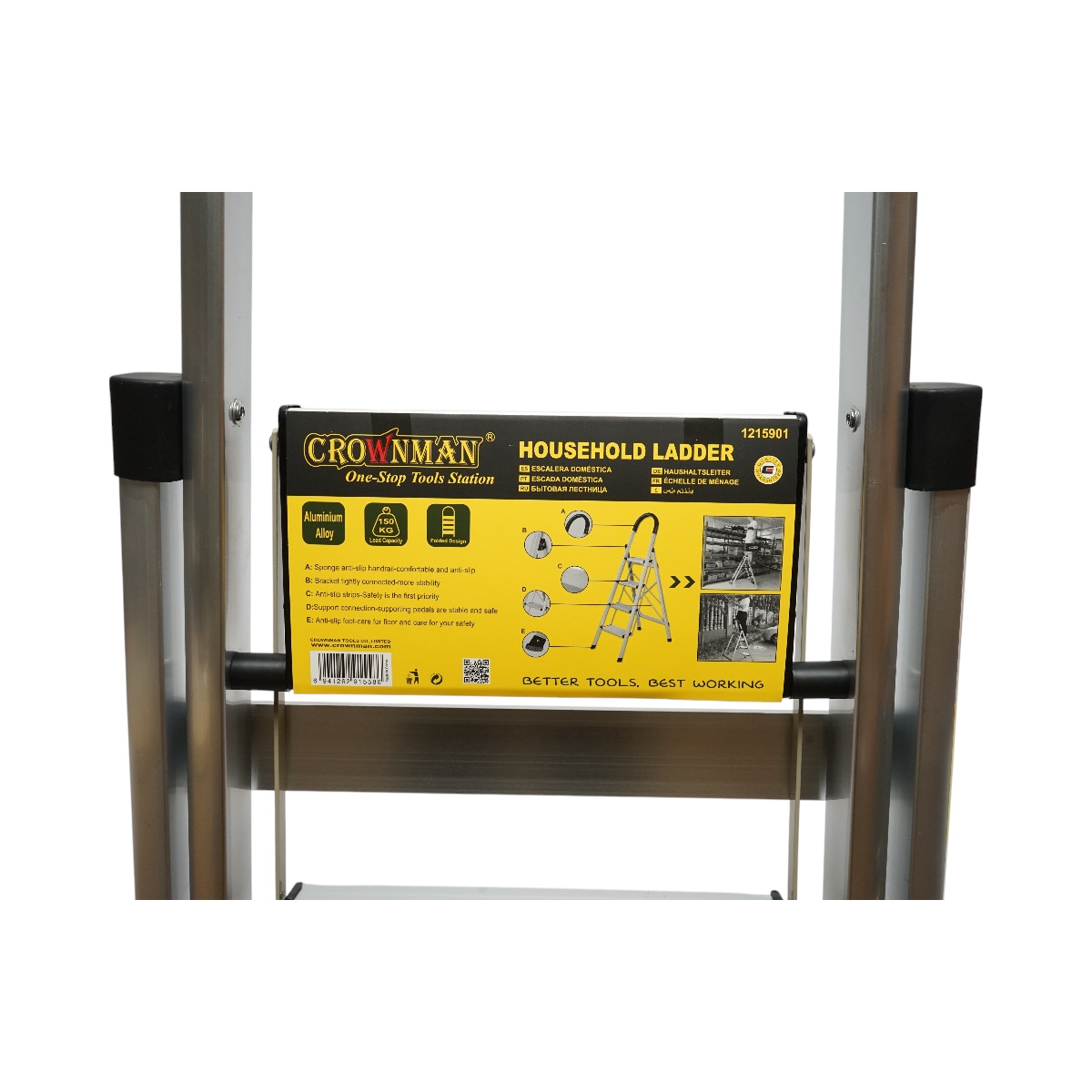 Descrierea produsului Marca CROWNMAN Material Aluminiu Sarcina maxima 150 Kg Design Pliabil Trepte Antiderapant Timp interior 143 cm Latime 51 cm Inatime de lucru 97 cm