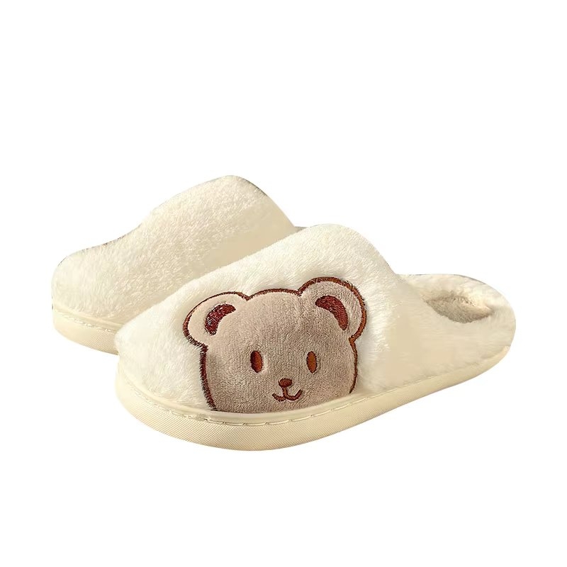 Papuci de casa pentru femei PC013, Fluffy Bears, Crem