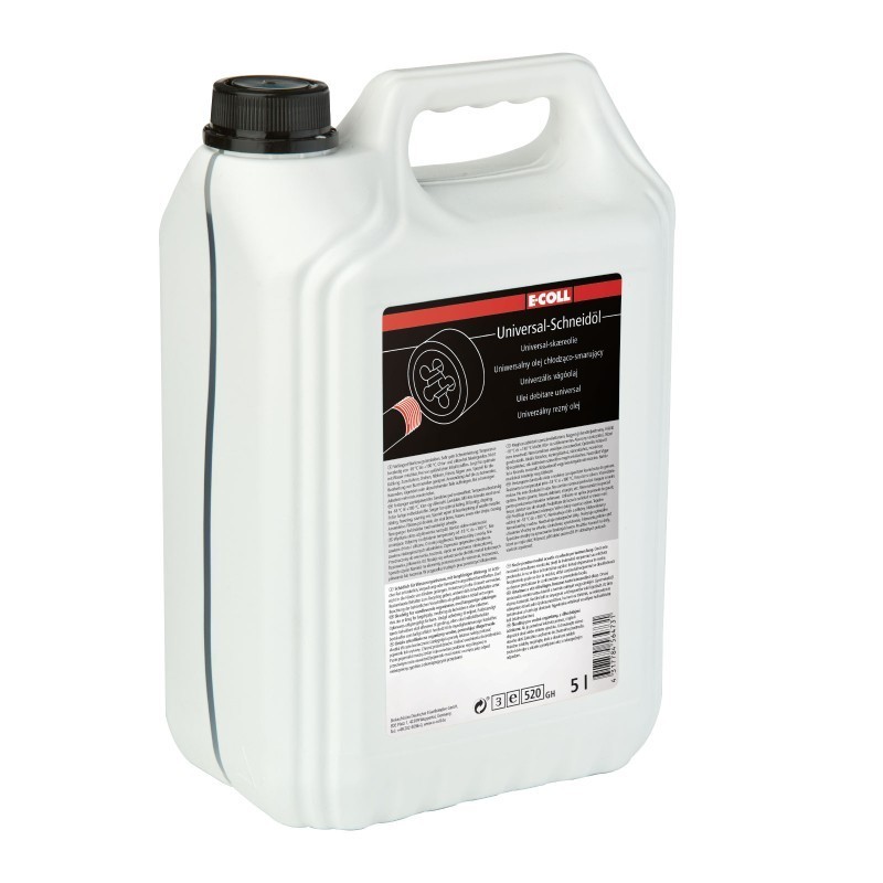 Ulei de Taiere Universal, E-coll, 5 l Fara substante periculoase. Fara clor, fara silicon. Nu se amesteca cu apa. Asigura o racire optima, pentru gaurire, stantare, frezare, taiere cu fierastrau, strunjire etc. Proprietati ideale de racire. Prelungirea durabilitatii uneltei. Performanta de lubrifiere. Calitate mare a suprafetei. Reduce efortul depus. Solicitare indelungata si viteza mare de taiere.