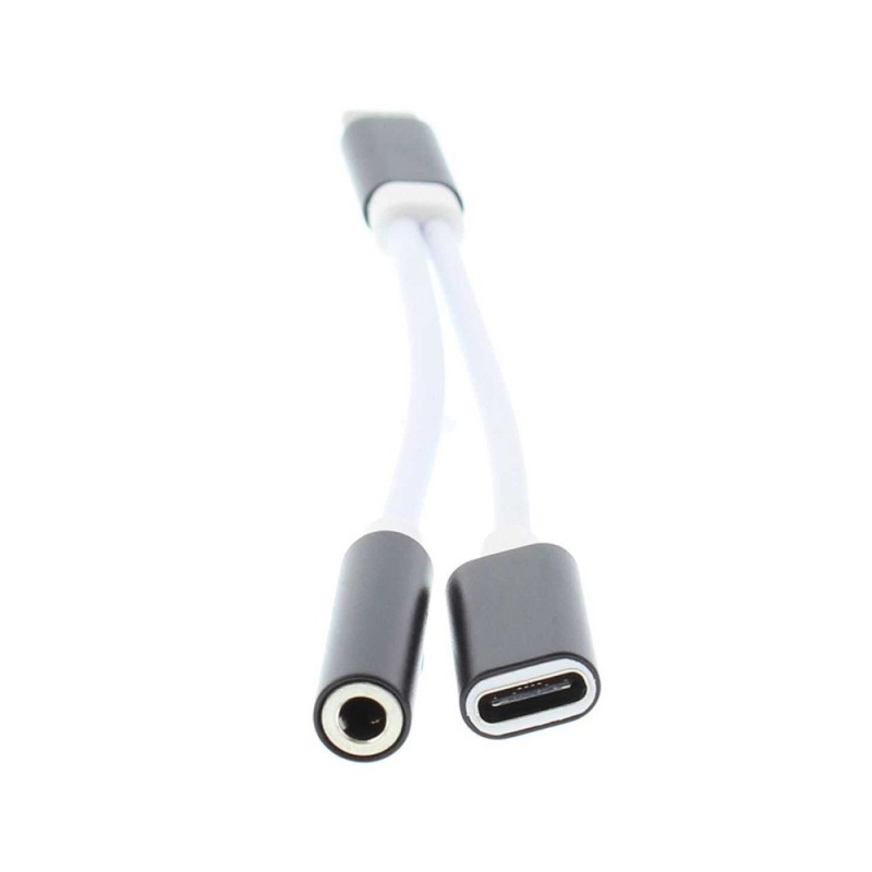 Set 2 x Adaptor USB-C Tata - Jack 3.5mm Mama si USB-C Mama, 13cm, Alb / Negru, Well