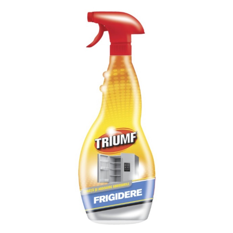 Detergentul pentru frigidere Triumf 500 ml curata rapid si eficient petele de grasime si resturile intarite de mancare. Acesta contine absorbant de miros care neutralizeaza mirosurile neplacute. Datorita compozitiei sale, ambianta din interiorul frigiderului va fi improspatat si nu contine colorant.