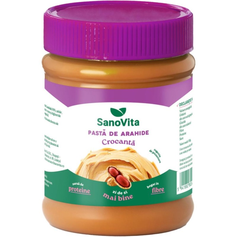 Acest pachet contine 2 bucati din produsul Pasta de Alune Crocanta, Sanovita, 375 gPasta de alune este crocanta, datorita bucatilor de arahide pe care le are in compozitie. Poate fi consumata pe paine dimineata, folosit in prepararea cremelor, smoothie-urilor sau a budincilor.Continutul in proteine si minerale ale pastei de aluneO lingura de pasta de alune aduce organismului tau:14% din doza zilnica recomandata de mangan8% din doza zilnica recomandata de magneziu7% doza zilnica recomandata de cupruContinutul in vitamine ale pastei de alunePasta de alune este un aliment hranitor, 100 de grame furnizand:9% din doza zilnica recomandata de vitamina E14% din doza zilnica recomandata de Vitamina B35% din doza zilnica recomandata de Vitamina B63% din doza zilnica recomandata de folatContinutul in fibre ale pastei de alunePasta de alune contine aproximtiv 8% fibre alimentare, cu ajutorul carora regleaza nivelul zaharului din sange si reduce colesterolul "rau".Grasimile sanatoase din pasta de alunePasta de alune contine predominant grasimi mono - si polinesaturate, cunoscute ca si grasimi bune pentru sanatatea noastra. Sunt studii care au evidentiat ca inlocuirea pastei de origine animala cu cea de alune, ar putea reduce nivelul colesterolului si al trigliceridelor.Resveratrol, secretul pastei de aluneAlunele contin un nutrient care se numeste resveratrol (prezent si in coaja si semintele strugurilor rosii, afine, mure sau merisor), un compus fenolic antimicrobian natural, care ajuta...