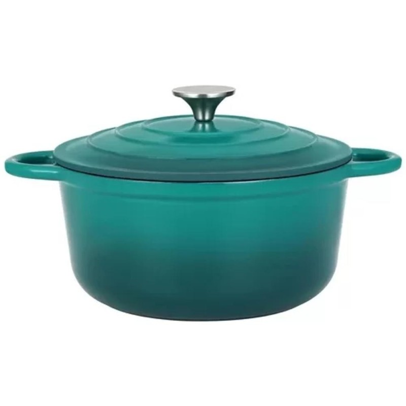 Oala din Fonta Emailata cu Capac, 28.5 cm, 6 l, Turcoaz, Perfect Home