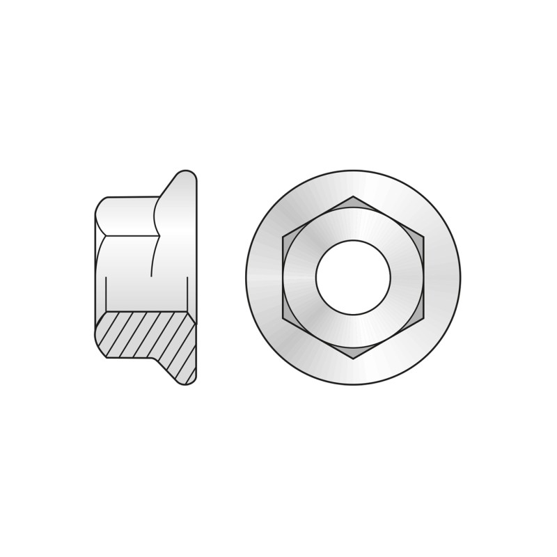 Acest pachet contine 50 bucati din produsul Piulita Hexagonala Flansa din 6923 Otel gr.8 Zincat-M16