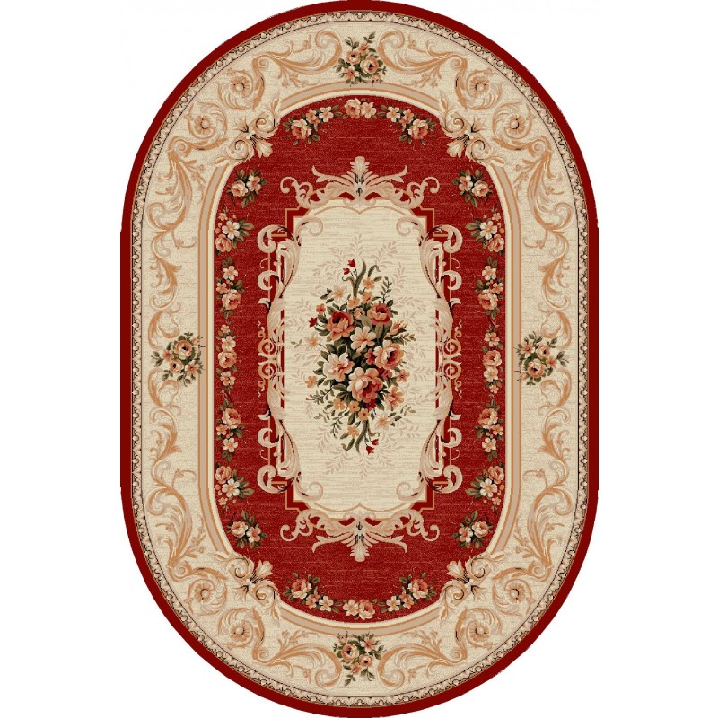 Covor Oval, 150 x 230 cm, Crem / Rosu, Lotos 523