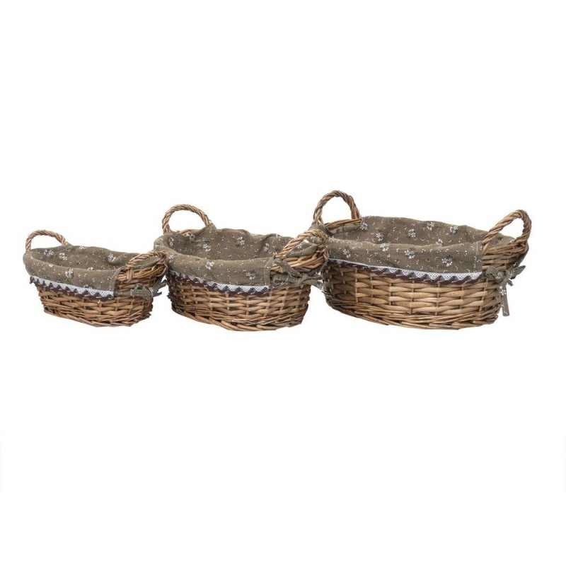 Set 2 x 3 Cosuri de Rachita Ovale, cu Manere, Material Textil, Maro Deschis