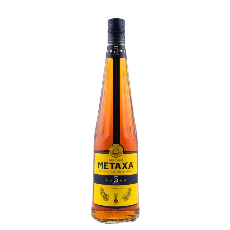 Brandy Metaxa 5 Stele, 38%, 1 l in 1888 Spyros Metaxa creeaza in Grecia brandul Metaxa, astazi parte a grupului Remy Cointreau. Desi comparat mai intai cu cognacul, iar mai tarziu cu brandy, Metaxa nu este o bautura clasificata in niciuna dintre aceste categorii. Metaxa 5 stele este rezultatul unei combinatii de vinuri Muscat din insula Samos, distilate de vin invechite si ierburi mediteraneene, maturata in butoaie din lemn de stejar timp de minim 5 ani. Tusele de vanilie si stafide albe, notele florale si intensitatea aromelor fructate, fac din Metaxa 5 stele, un ingredient valoros pentru orice tip de cocktail sau long drink. Se poate consuma si sec/ neat, in phare tip cognac bowl, sau cu gheata in pahare tip rock/ bucket.