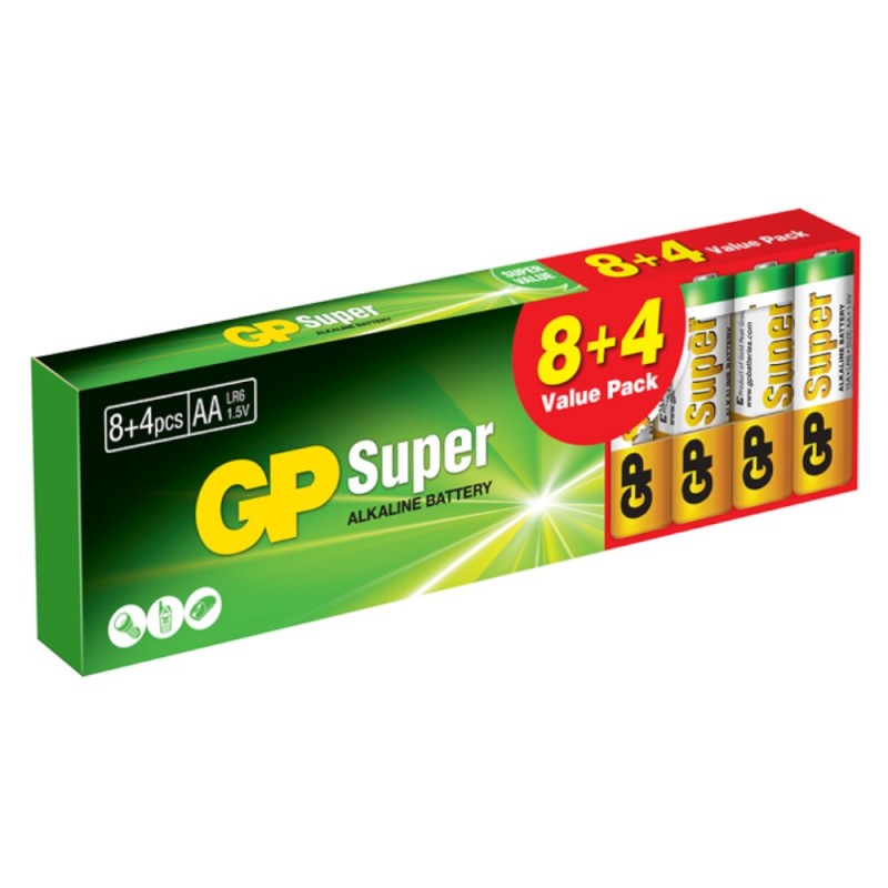 Set Baterii Alcaline AA R6, GP Super, Cutie, 12 Bucati