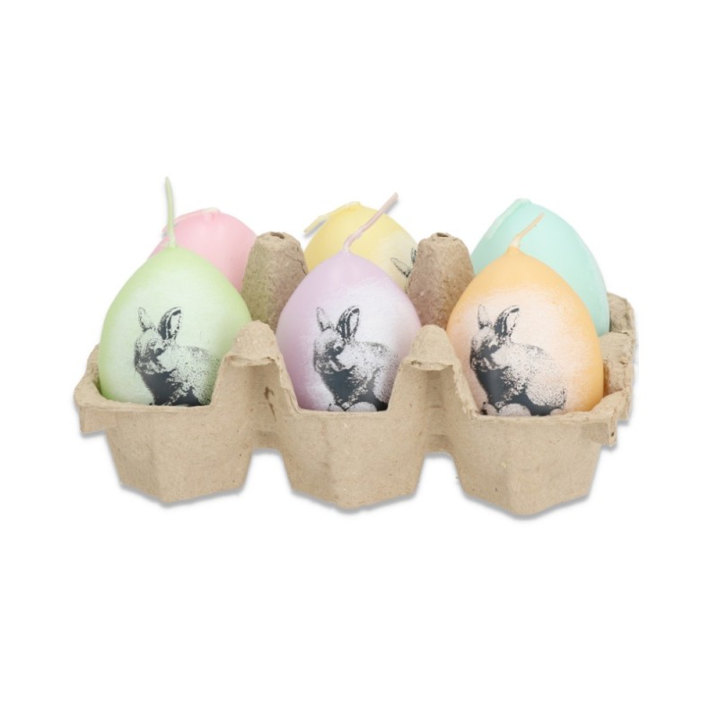 Set 2 x 6 Lumanare Ou din Parafina, Model Iepure, Culori Asortate