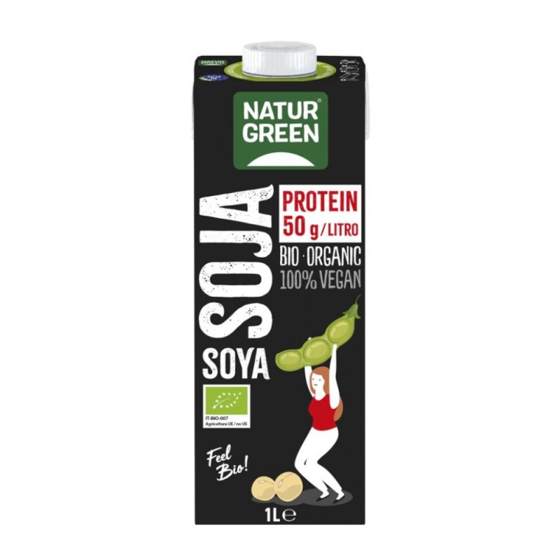 Bautura Vegetala Bio de Soia, Natur Green, cu Proteine, 1 l50 g de proteine per litruVeganFara lactozaFara glutenIngrediente: apa, soia (13%), zahar din trestie, aroma naturala de vanilie, sare de mare.Dupa deschidere se pastreaza la frigider si se consuma in termen de 5 zile.A se consuma de preferinta inainte de: a se vedea data inscriptionata pe ambalaj.