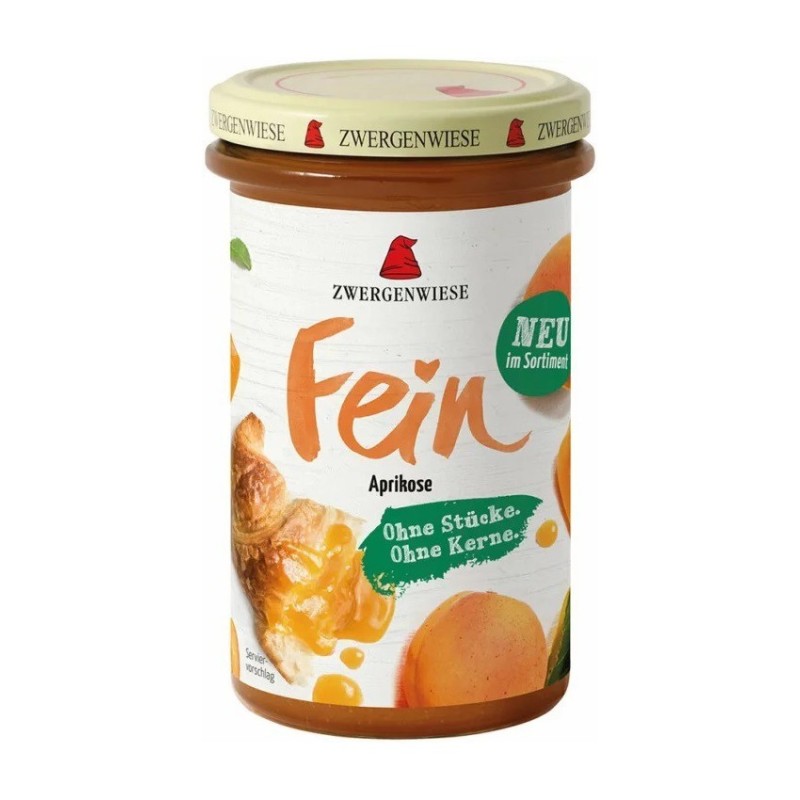 Gem Fin de Caise Bio, 280 g, Zwergenwiese Vegan Fara gluten Ingrediente: caise* 55%, zahar din sfecla*, gelifiant: pectina, suc de lamaie din concentrat*, agent de ingrosare: faina de roscove*. *=din culturi certificate ecologic. Agricultura UE/non-UE. Conditii de pastrare: dupa deschidere se pastreaza la temperaturi de 6°C - 8°C si se consuma in cateva saptamani. A se consuma de preferinta inainte de: a se vedea data inscriptionata pe capac.