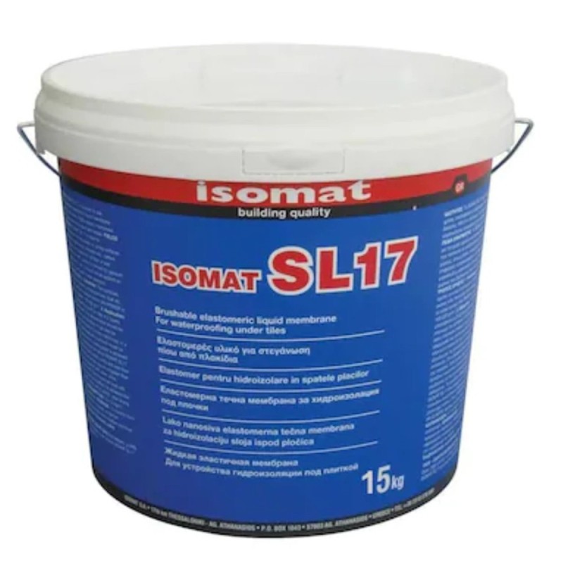 Isomat SL-17 este o hidroizolatie lichida, gata de utilizare, realizata pe baza de apa. Aceasta formeaza o membrana ideala pentru aplicarea sub placi, inainte de lipirea acestora.Se foloseste pe suprafete aflate in spatii cu umiditate, fara imbinari sau rosturi, produsul fiind compatibil cu toate tipurile de pardoseli si pereti.