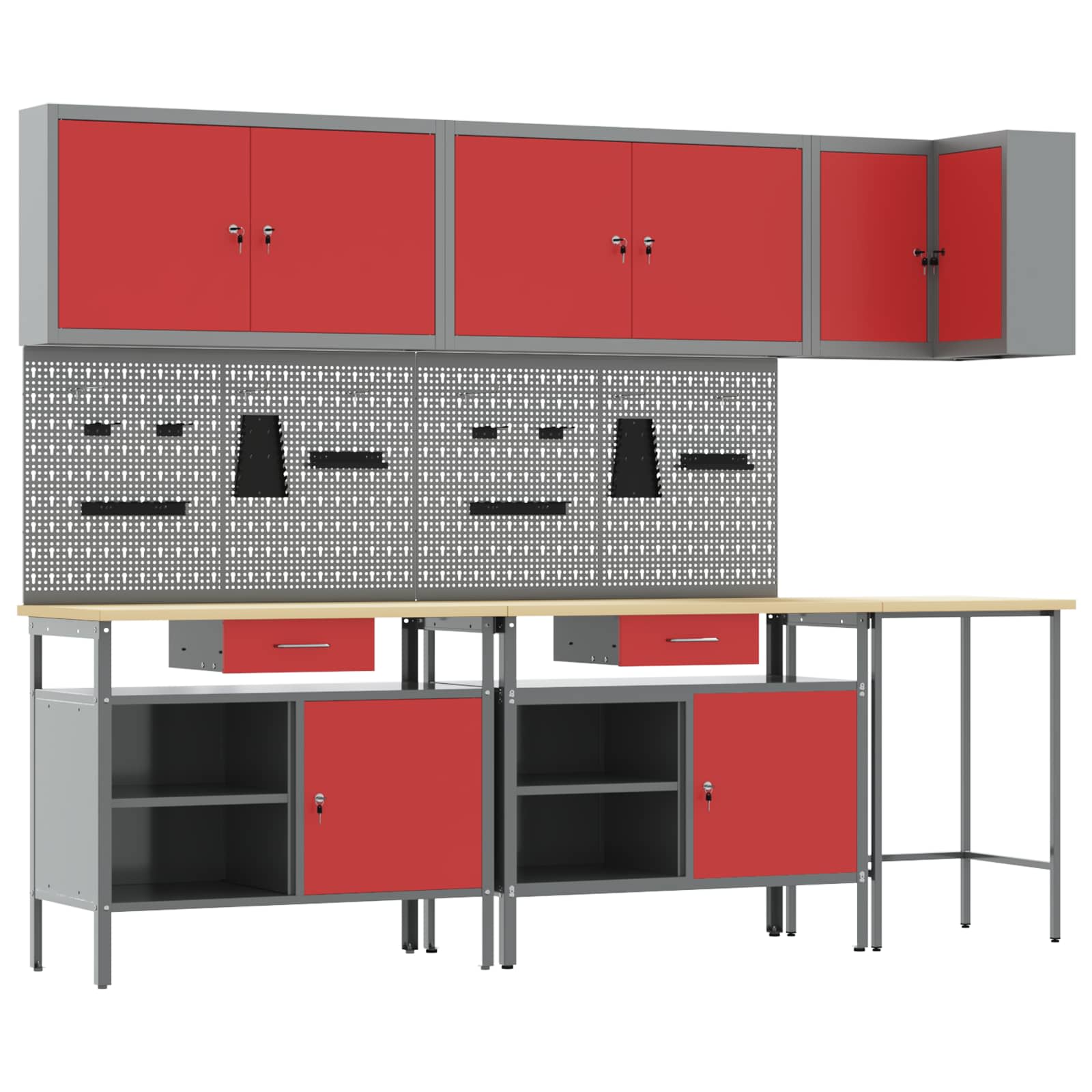vidaXL Set de dulapuri de lucru cu sertar cu raft 10 pcs Roșu și gri
