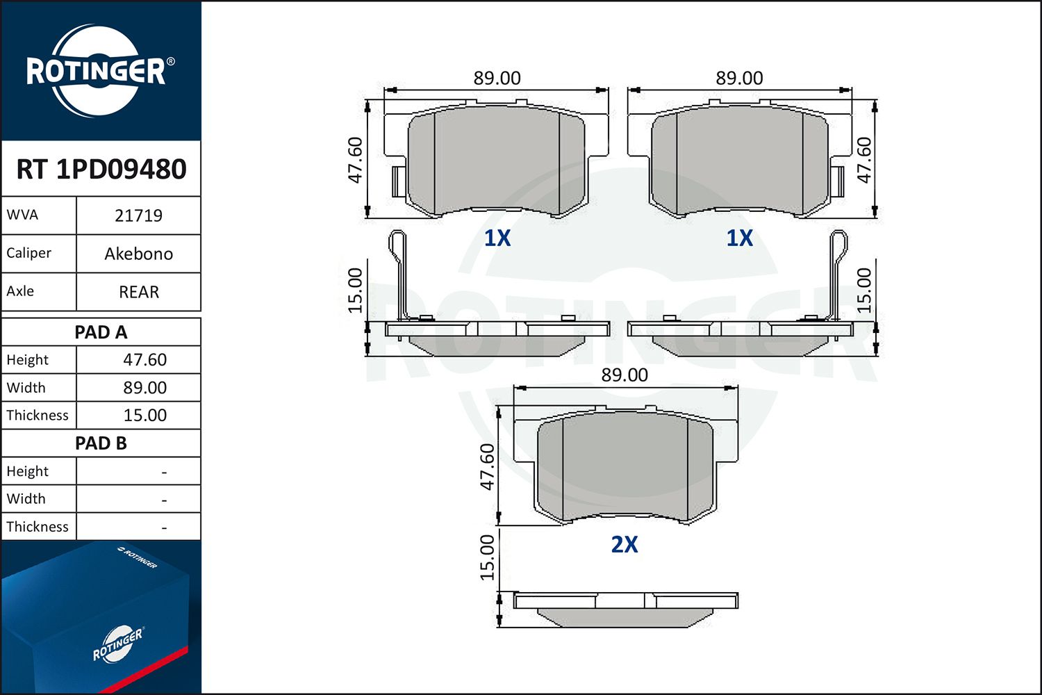set placute frana,frana disc ROTINGER RT 1PD09480