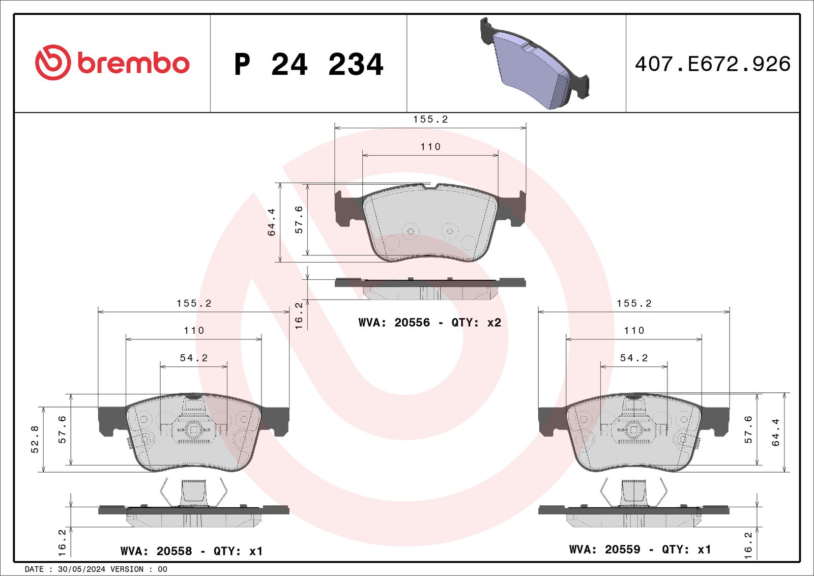 set placute frana,frana disc BREMBO P 24 234