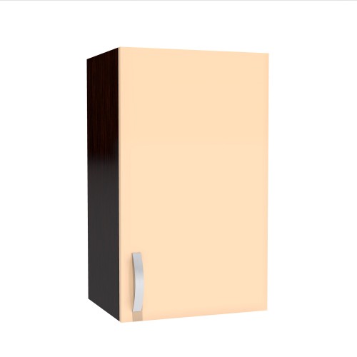 Corp superior 45 cu 1 usa Zebra cappuccino. Dimensiuni (l x h x a): 450 x 720 x 307 mm Culoare: Wenge cu cappuccino lucios. Materiale folosite: Pal melaminat, manere aluminiu, balamale cu piston (inchidere soft close). Pachetul vine cu 2 dispozitive reglabile de suspendare corpuri mobila, din metal cu plastic alb (poza). *Nota: Schita de montaj nu se afla in interiorul coletului intre piesele de mobila. Schita de montaj o sa fie atasata pe spatele facturii.