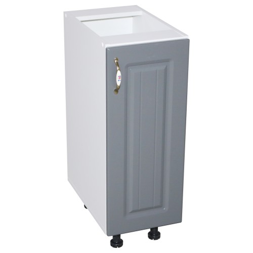 Dimensiuni (l x h x a): 300 x 820 x 481 mm Culoare: Alb cu gri. Materiale folosite: Pal melaminat, manere aluminiu, balamale cu piston (inchidere soft close). picioare reglabile plastic 100 mm. *Nota: Schita de montaj nu se afla in interiorul coletului intre piesele de mobila. Schita de montaj o sa fie atasata pe spatele facturii.