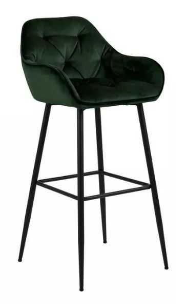 Scaun De Bar din metal, textil, negru, verde închis