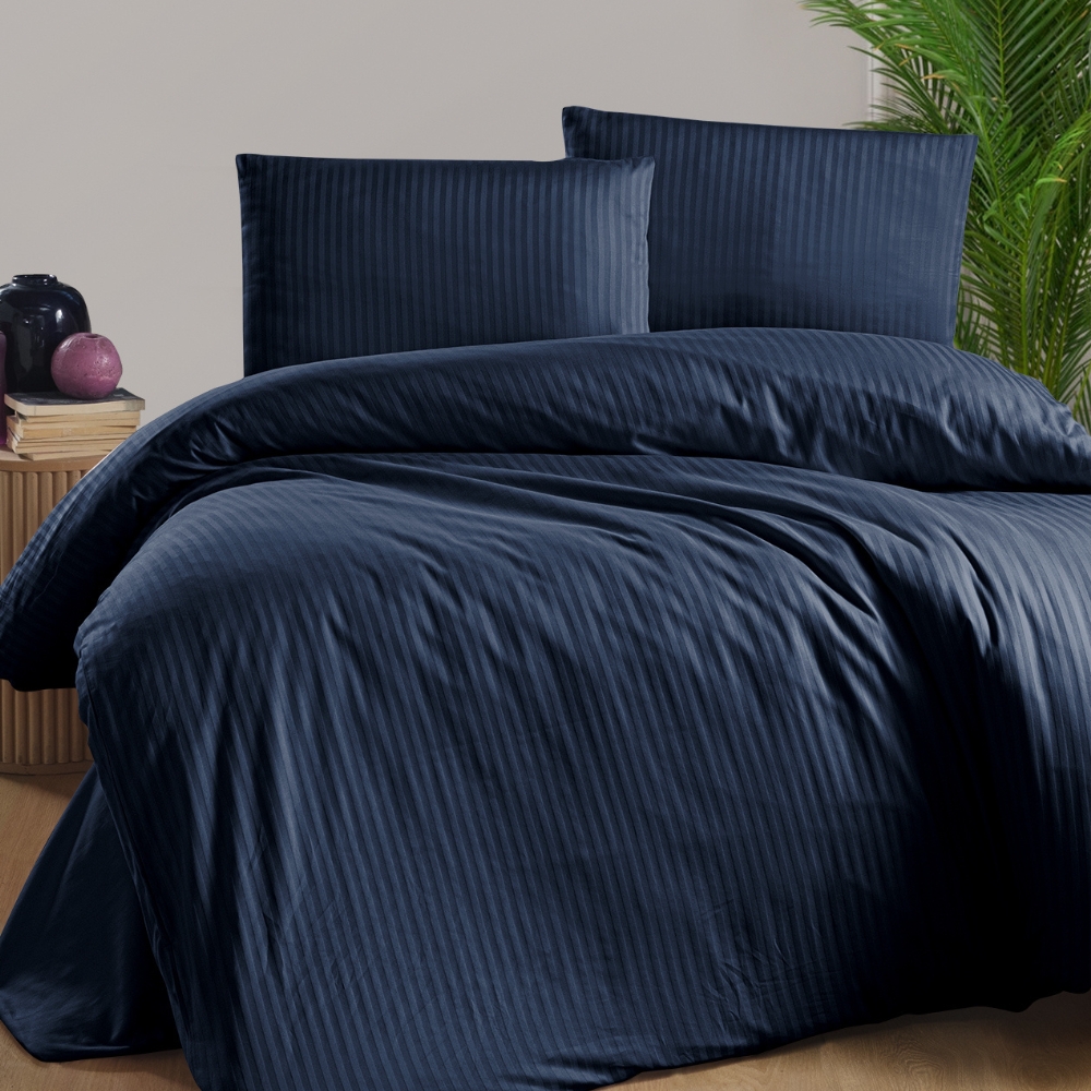 Lenjerie pat satin 2 persoane STRIPED 4 piese navy