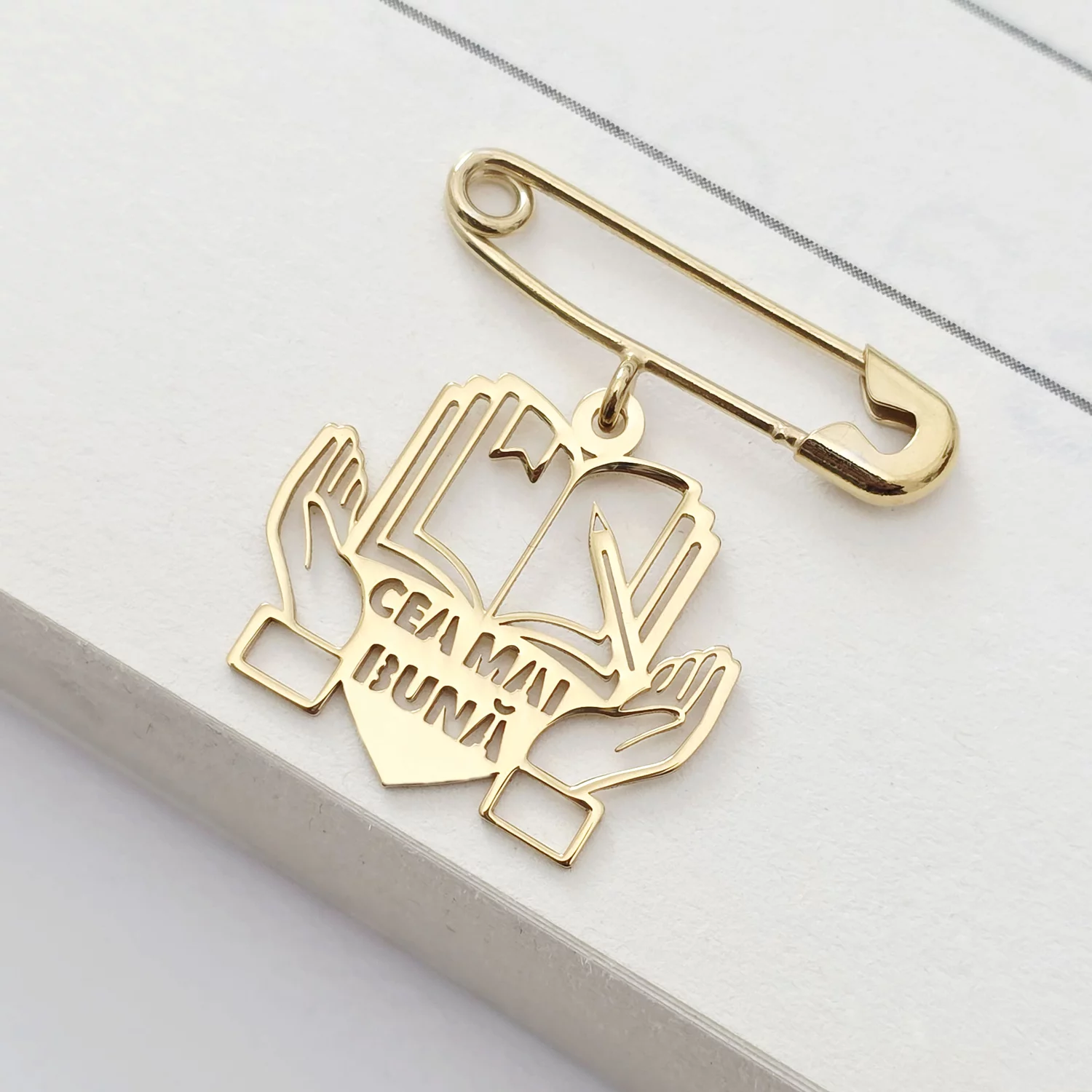 Ai cumparat produsul Brosa Ac de siguranta - Pandantiv Carte – Argint 925 placat cu Aur Galben 18K ?
