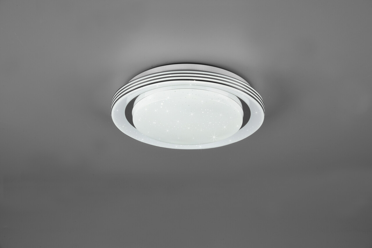 Design simplu – caracteristici practice! Corpul de iluminat ATRIA cu carcasa Starlight ofera o gama larga de posibilitati de aplicare. Culoarea luminii si intensitatea luminii pot fi controlate convenabil prin intermediul unei telecomenzi. In plus, plafoniera este dotata cu o lumina de noapte si o functie practica de memorie. Datorita aspectului discret in alb, integrarea in conceptele de mobilier existente este extrem de usoara. In plus, corpurile de iluminat dispun de tehnologie LED moderna care reprezinta o calitate inalta a luminii. Sursele de lumina LED se caracterizeaza printr-o durata lunga de viata si o generare redusa de caldura.RL reprezinta o serie de corpuri de iluminat noi si la moda. Pe langa corpurile de iluminat la moda, ventilatoarele sau lampile solare sunt, de asemenea, o parte integranta a acestui brand.SpecificatiiCicluri de comutare (ON/OFF): 10.000Grad de protectie: IP20Durata de viata: 25.000 hIndicele de redare a culorii (CRI): 80Tensiune si frecventa: 230V ~ 50HzClasa de eficienta FTemperatura culoare: 3000/6000KTip soclu: 1x SMDPutere: 10.5WFlux luminos: 1080 lumeni
