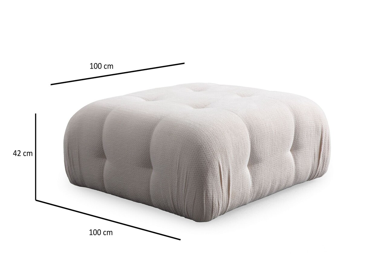 BanchetaTesatura: PoliesterLungime: 100 cm Latime: 100 cm Inaltime: 42 cmSpuma: 28 DNS spumă moale gri / 24 DNS Feather60% spumă tăiată / 40% spumă de silicon pentru spatePicioare: Picioare mici din plastic negru (3 cm)Inaltime sezut: 42 cm Adancime sezut: 100 cm
