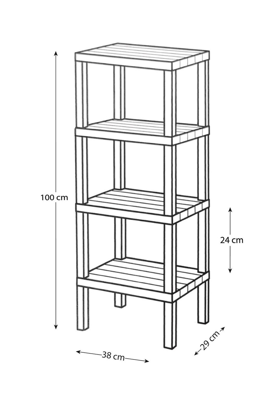 Raft multifuncțional din plasticLatime: 38 cmInaltime: 100 cmAdancime: 29 cmGreutate maxima suportata / raft: 20 kg