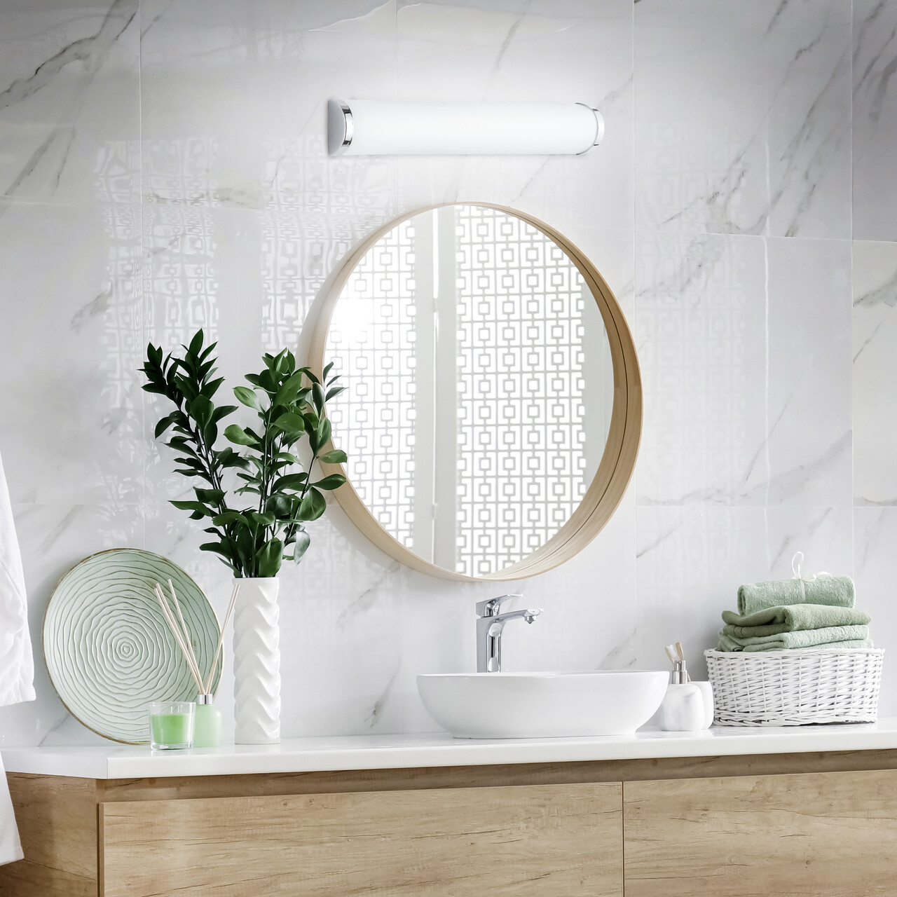 Iluminatul adecvat pe perete este important: nici prea puternic, nici prea slab. De aceea, lampa de perete XAVI este perfecta pentru montarea deasupra sau langa oglinda, de exemplu. Sticla mata distribuie bine lumina. Proiectia este de 6.5 cm. Cu schema sa de culori atemporale si sticla alba satinata, aplica are un aspect sofisticat si, prin urmare, poate fi integrata in orice stil interior. Pentru o iluminare moderna si fiabila, se recomanda utilizarea unui bec LED. Ofera o calitate inalta a luminii, este versatila si convinge prin iluminarea uniforma. Durata lunga de viata si generarea redusa de caldura o fac alegerea ideala pentru o gama larga de aplicatii.Brandul TRIO ofera un portofoliu diversificat de produse inovatoare in domeniul iluminatului. Gama include idei de iluminat decorativ si functional pentru spatii interioare si exterioare.SpecificatiiBecurile nu sunt incluse.Grad de protectie: IP21Tensiune si frecventa: 230V ~ 50HzClasa de eficienta ETip soclu: 3x E14Putere: 40W