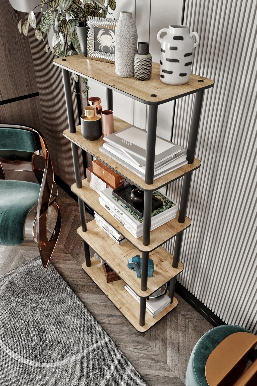 Corp biblioteca, Hanah Home, Bookcase 5 Rect, 60x139x30 cm, MDF , Stejar